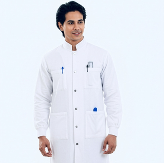 Lab Coat: 100% Cotton – Snap Button – Knee Length